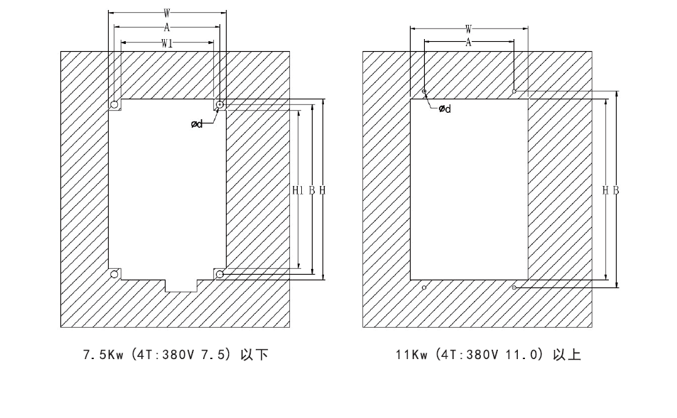 全系列采用直流風(fēng)扇,全密封式直流接觸器,可靠穩(wěn)定性更高,可直接應(yīng)用于EPS,逆變電源等行業(yè) 優(yōu)控YK600變頻器4KW以上三相變頻器接線圖: 7.5KW以下塑膠外形尺寸及安裝尺寸: 11-132KW鈑金機箱外形尺寸及安裝尺寸示意圖: 塑料結(jié)構(gòu)變頻器穿墻開孔尺寸/鈑金結(jié)構(gòu)變頻器穿墻開孔示意圖: 關(guān)于【優(yōu)控機電】: 聯(lián)系方式: 廣東地址:廣東省東莞市南城區(qū)布魯斯大廈102-103室(優(yōu)控自動化) |