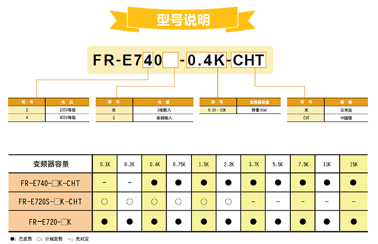 產(chǎn)品簡(jiǎn)介:FR-E700系列替代FR-E500系列。(價(jià)格與老型號(hào)相當(dāng))