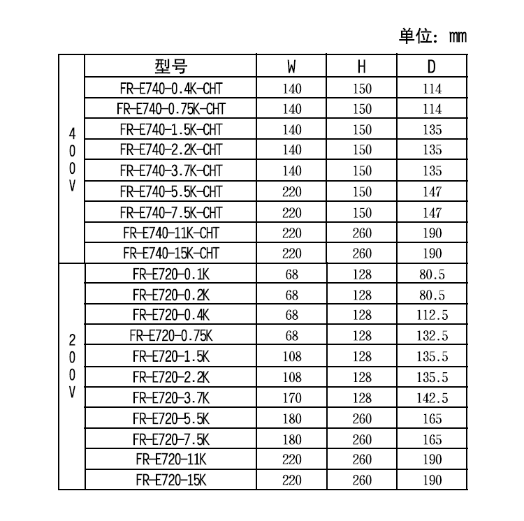 ◆優(yōu)控機(jī)電三菱變頻器FR-E700系列功率范圍: