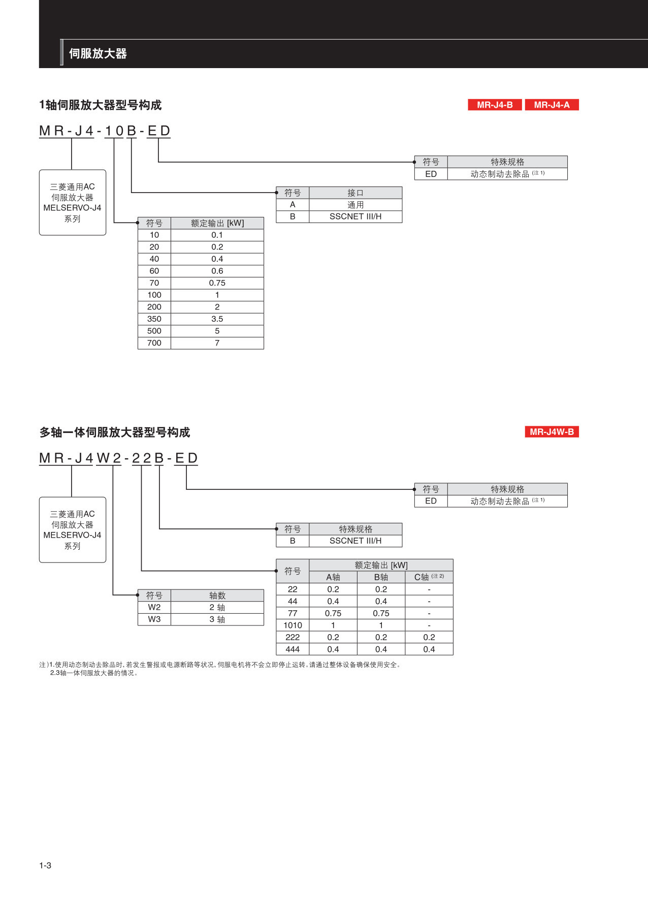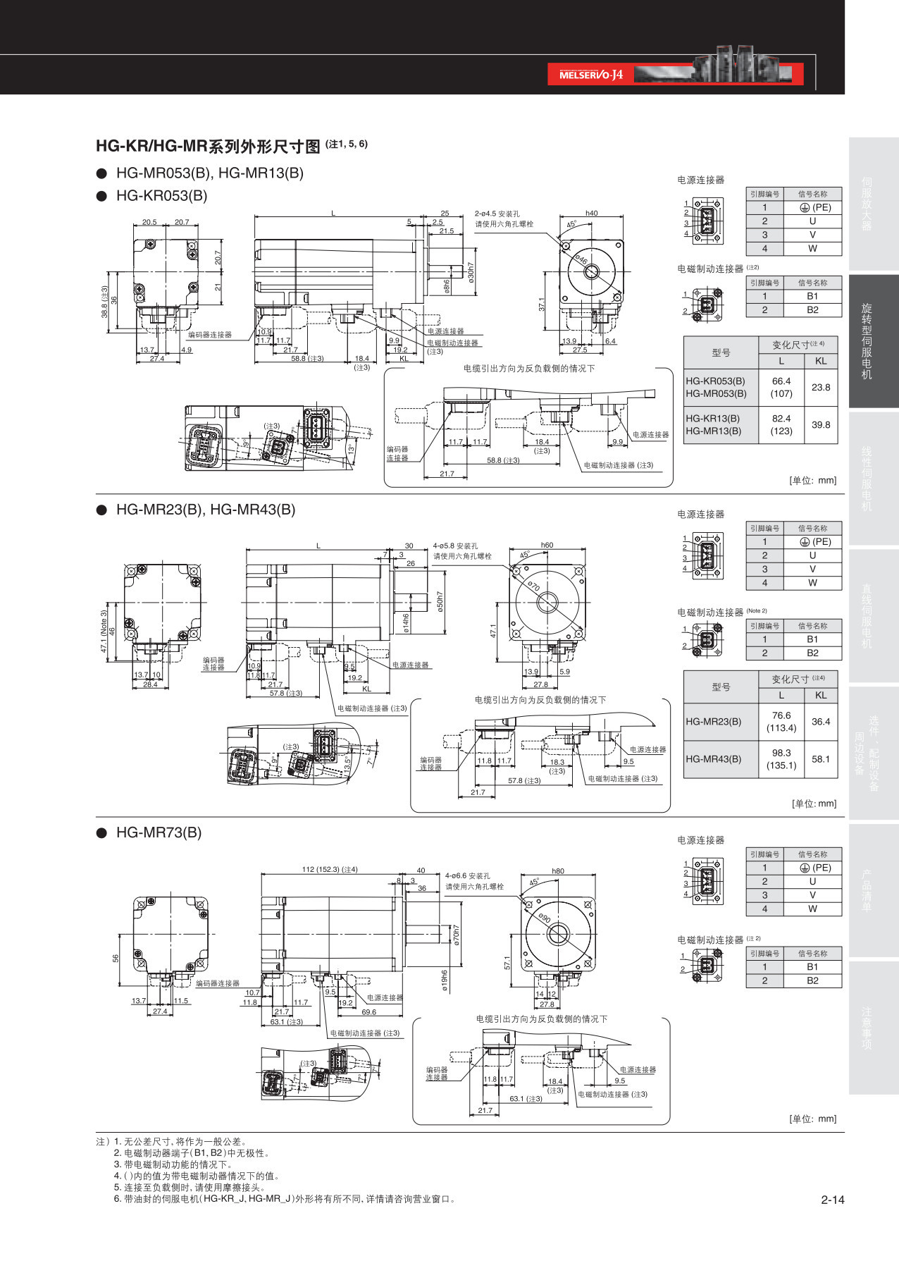 功率:0.4KW HF-MP43/KP43B 電機 MR-J3-40A 驅(qū)動器 MR-J3CN1 編碼電纜 MR-J3ENCBL5M-L 電機電源電纜/接頭 MR-PWS1CBL2M-L 驅(qū)動器電源接頭 MR-BKS1CBL2M-L 制動器接頭