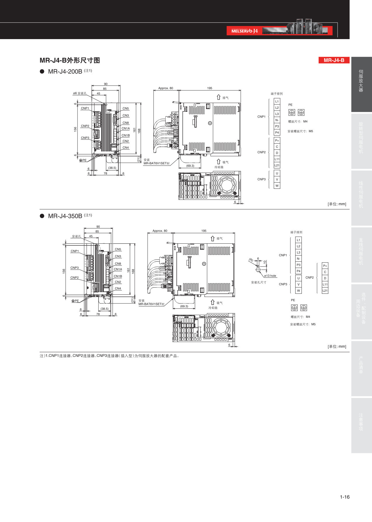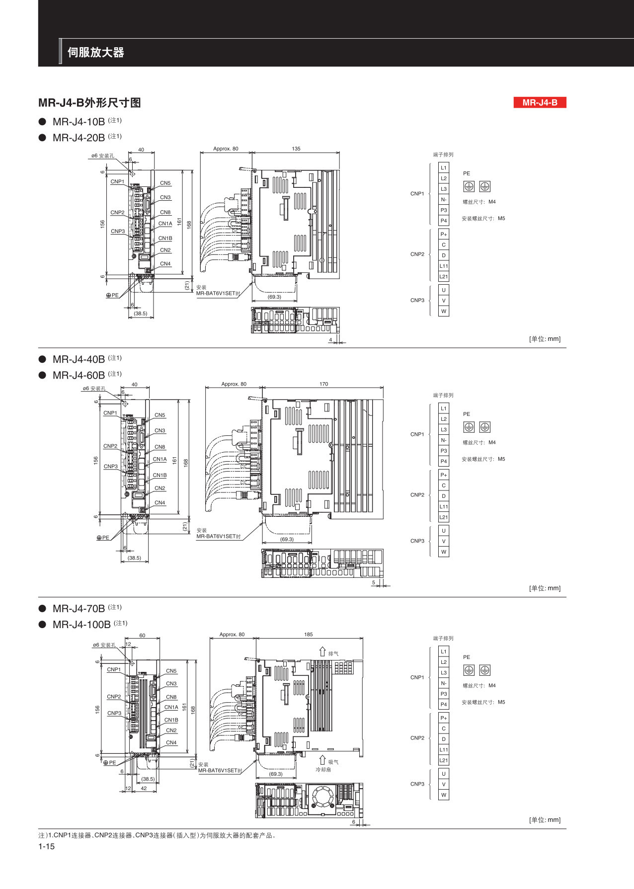 功率:1.5KW HF-SP152B 電機 MR-J3-200A 驅(qū)動器 MR-J3CN1 編碼電纜 MR-J3ENSCBL5M-L 電機電源電纜/接頭 MR-PWCNS4 驅(qū)動器電源接頭 MR-BKCNS1 制動器接頭