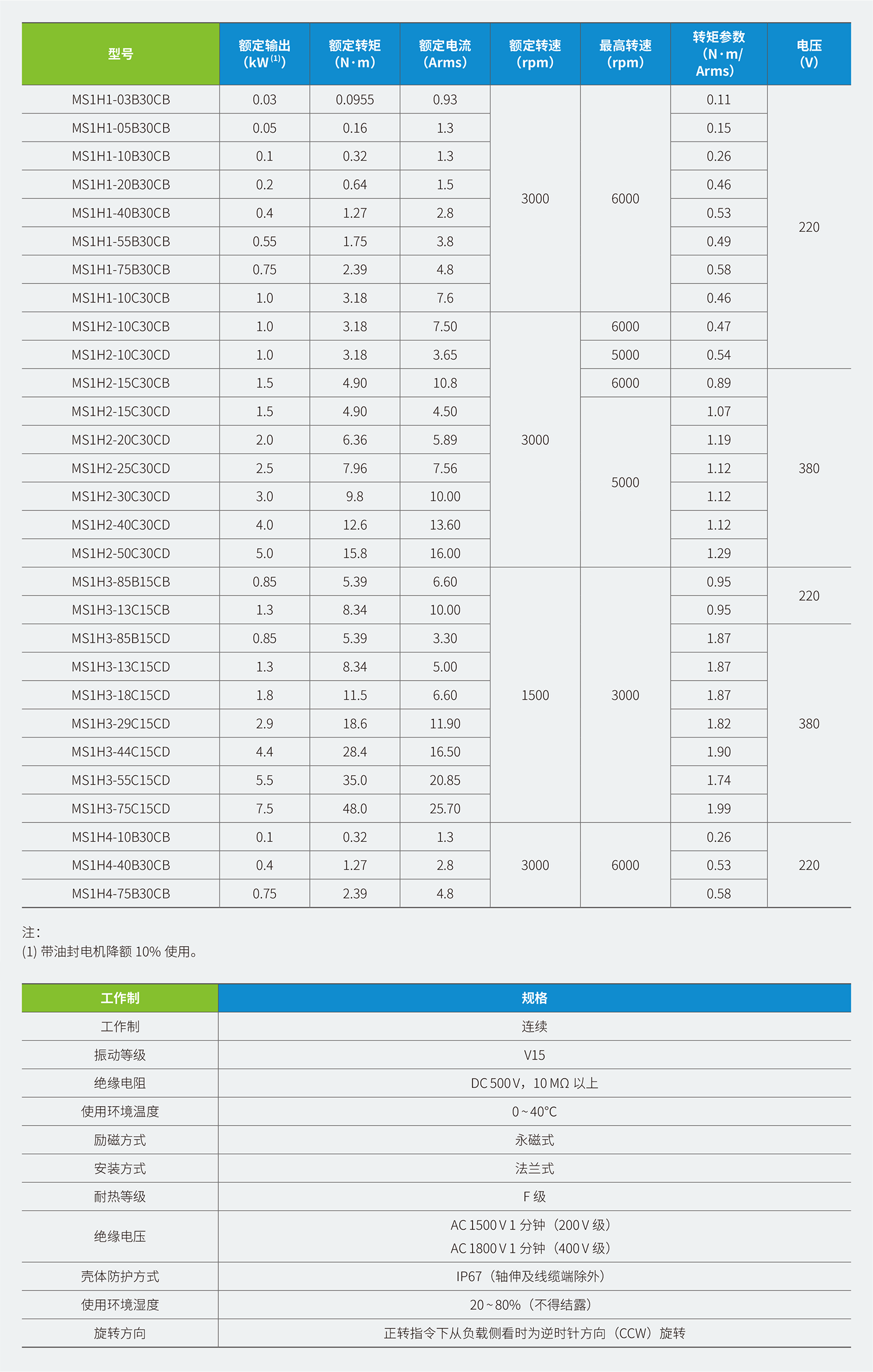 匯川MS1 系列伺服電機(jī)?產(chǎn)品介紹: MS1 系列伺服電機(jī)產(chǎn)品是匯川技術(shù)研制的新一代高性能伺服電機(jī)。MS1 電機(jī)配合伺服的易用性功能,調(diào)試更加方便,運(yùn)行更加平穩(wěn),定位時(shí)間更短,能更好的配合伺服驅(qū)動(dòng)器完成位置控制、速度控制和轉(zhuǎn)矩控制。同時(shí)MS1 電機(jī)擁有IP67 防護(hù)、高抗震設(shè)計(jì)等特點(diǎn),保障設(shè)備持續(xù)運(yùn)行,安全持久。 產(chǎn)品特性及優(yōu)點(diǎn) 1、配合 23 bit單 / 多圈絕對(duì)值編碼器,絕對(duì)定位精度可達(dá)±15 角秒以內(nèi) 2、內(nèi)置轉(zhuǎn)矩波動(dòng)補(bǔ)償功能,轉(zhuǎn)矩波動(dòng)< 0.5% 3、電機(jī)過(guò)載能力進(jìn)一步提升 4、整機(jī)防護(hù)等級(jí) IP67(油封除外),高抗震設(shè)計(jì),確保各類工況安全耐用 5、延續(xù)小鋼炮系列的強(qiáng)勁動(dòng)力和高性能 產(chǎn)品參數(shù): |