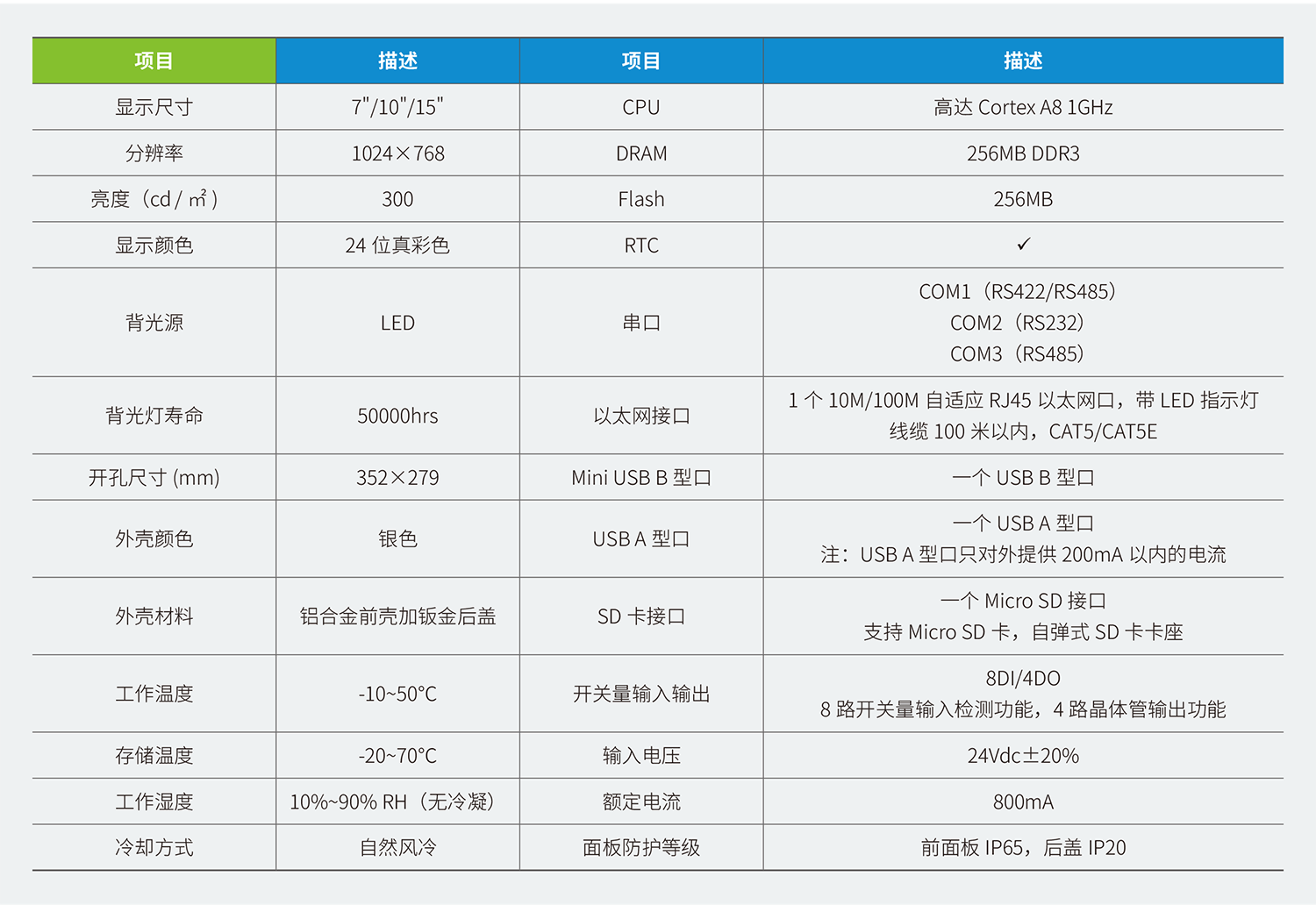 ?IT7000 系列是基于Linux 開(kāi)發(fā)的新一代全組態(tài)化開(kāi)放式大屏幕HMI,采用強(qiáng)大的A8 內(nèi)核處理器,顯示品質(zhì)顯著提升。該系列產(chǎn)品支持第三方圖標(biāo)導(dǎo)入,相比傳統(tǒng)HMI 增加了SCADA 等應(yīng)用功能,具有更快的數(shù)據(jù)處理和響應(yīng)速度。 ![]() 產(chǎn)品特性及優(yōu)點(diǎn): 1、T7000 系列采用 Cortex-A8 架構(gòu) CPU,工作主頻高達(dá)1GHz,可以流暢支持動(dòng)畫(huà)以及視頻播放 2、采用匯川 InoTouch 系列后臺(tái)開(kāi)發(fā)軟件,既支持所見(jiàn)即所得的組態(tài)圖形化編程語(yǔ)言,也支持宏指令代碼和腳本編程。符號(hào)式編程與圖形化編程相結(jié)合,既可以實(shí)現(xiàn)簡(jiǎn)易化編程也可以實(shí)現(xiàn)靈活性編程zz支持以太網(wǎng)、串口的通信組網(wǎng)方案,支持多種主流 PLC和其他設(shè)備的通信協(xié)議 3、可擴(kuò)展的軟件平臺(tái):用戶可自己定制開(kāi)發(fā)控件對(duì)象 4、多達(dá)3個(gè)串行通信口COM1-3,部分機(jī)型具備以太網(wǎng)、4G通信和開(kāi)關(guān)量輸入輸出功能,具備2個(gè)USB口,支持SD 卡 5、完備的人機(jī)交互功能+腳本程序配合:指示燈、按鈕、開(kāi)關(guān)、曲線、報(bào)警、動(dòng)畫(huà)、報(bào)表、配方、用戶管理、數(shù)據(jù)導(dǎo)入導(dǎo)出,提供高質(zhì)量的人機(jī)交互體驗(yàn) 6、豐富的圖庫(kù)資源 + 界面風(fēng)格設(shè)定 + 流暢的動(dòng)畫(huà):方便的開(kāi)發(fā)出具有統(tǒng)一界面風(fēng)格的畫(huà)面,提高設(shè)備操作員的交互體驗(yàn) 7、VNC功能,可實(shí)現(xiàn)手機(jī)無(wú)線投屏 |